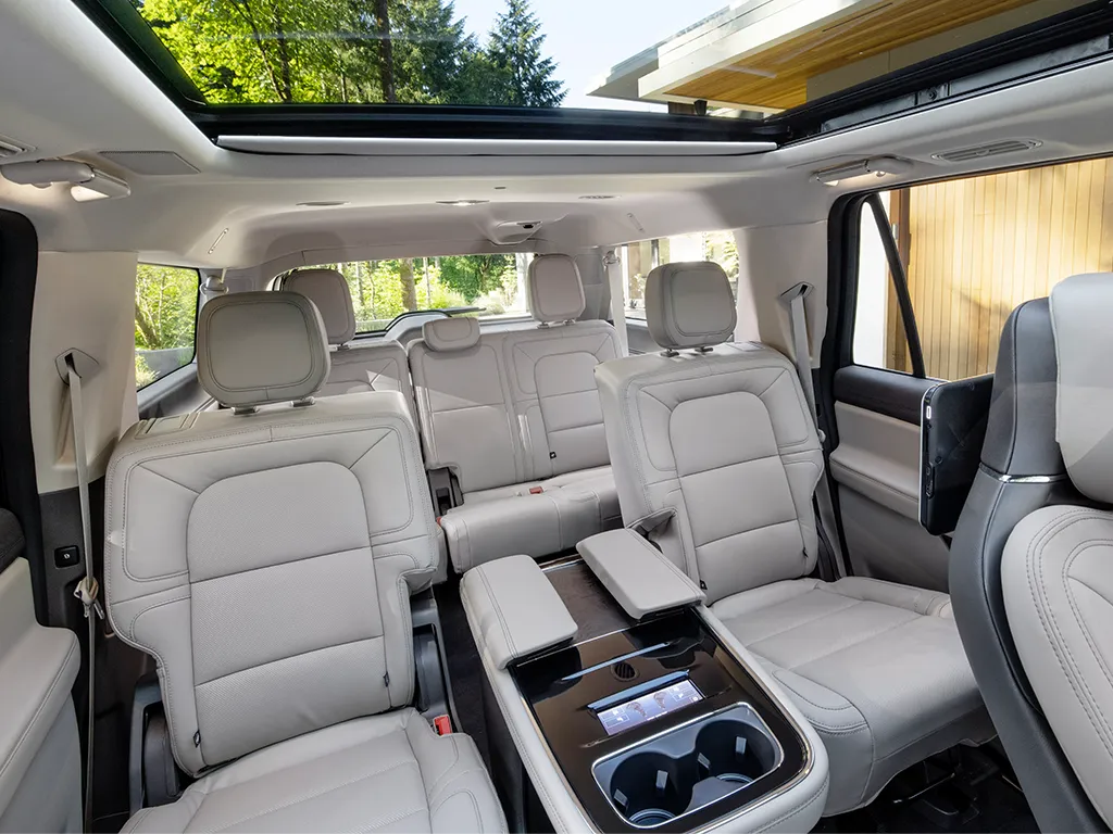 Meticulously crafted with high-quality materials, the interior creates an elegant and refined atmosphere, ensuring comfort for all passengers. The ample room allows everyone to stretch out and relax, making long drives enjoyable. Attention to detail is evident throughout, from the exquisite craftsmanship to the premium finishes, including soft-touch materials and subtle ambient lighting. For those who value both style and practicality, the Navigator offers a variety of seating configurations. Passengers can customize their experience with options like a center console, pass-through, or bench seat design, ensuring comfort in every journey.